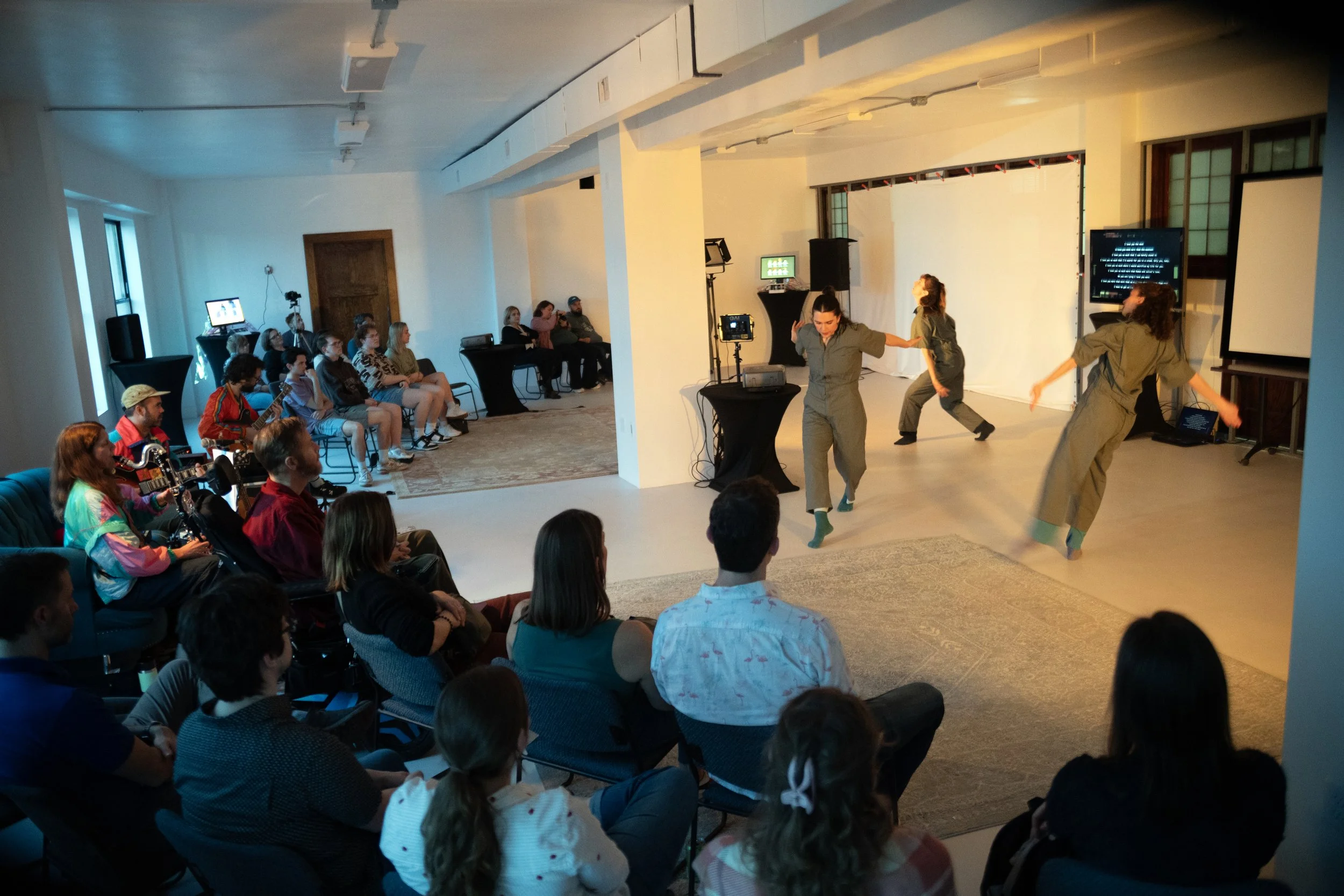 A multimedia performance work featuring dance, animation, bass clarinet, guitar, electronics and live multi-channel spatialized audio processing, HENM delves into the chaos and challenges of witnessing and listening within the accelerated and ever-changing information cycles of public and private spheres. Workshopped as a part of Chicago’s Elastic Arts CLEAT Series (Chicago Laboratory for Electro-Acoustic Theatre) and completed at The Rivoli Arts District experimental performance venue in La Crosse, WI.